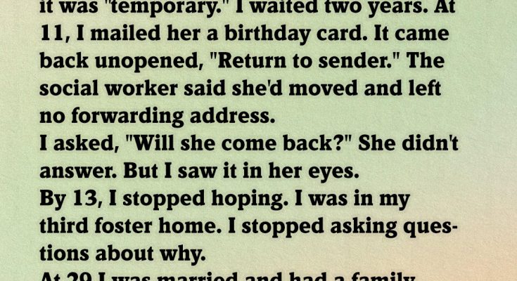For two years, I clung to that word. At 11, I mailed Mom a birthday card. Two weeks later, it came back stamped Return to Sender.