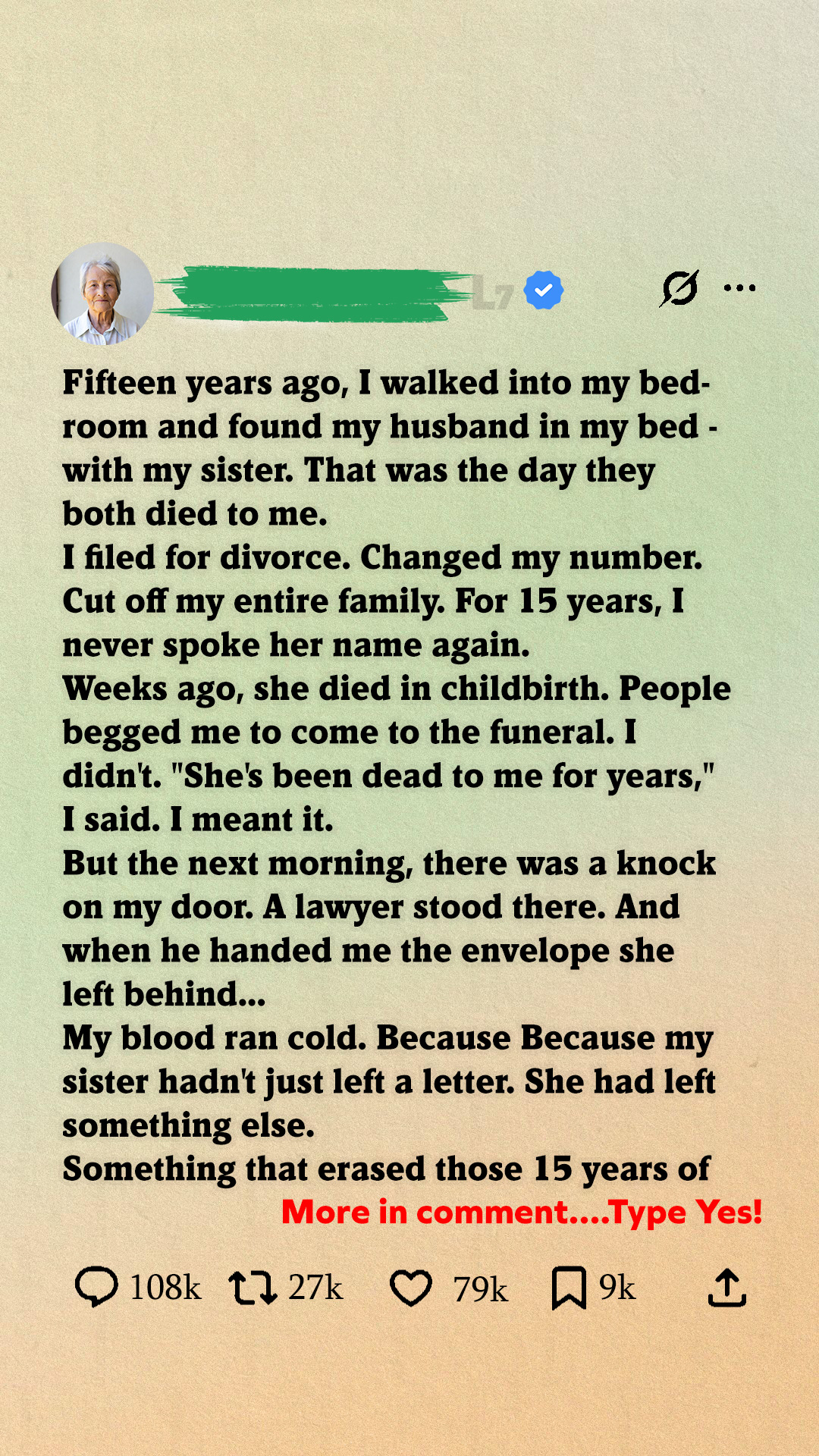 My sister tried to reach out once. She sent a long email saying it had been a mistake. That she loved me. That she hated herself.