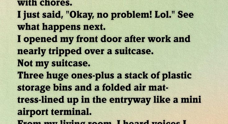 Then I walked out the door for work, leaving three suitcases, a shocked husband, and an entire family realizing they had picked the wrong house to treat like a free hotel.