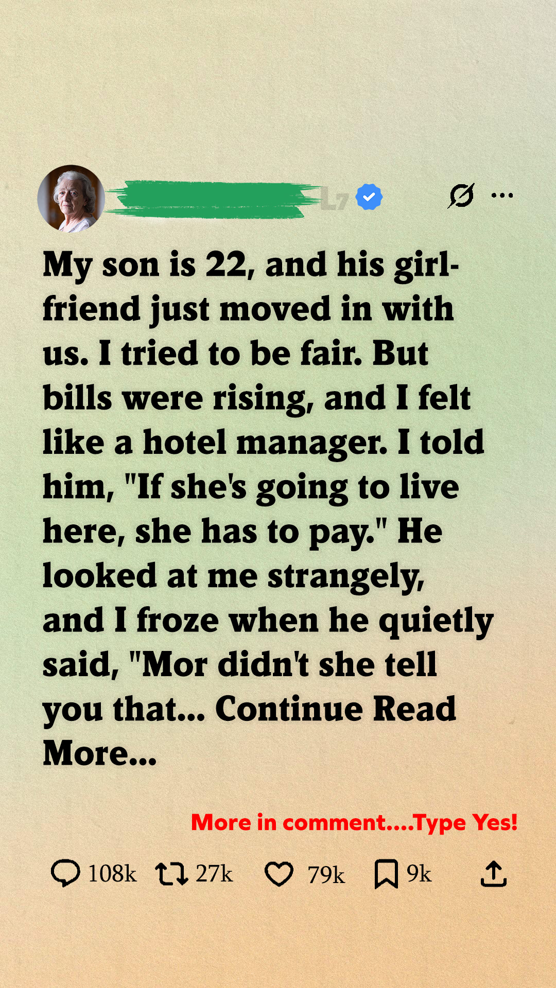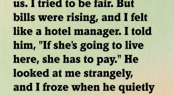 I took a deep breath. “Look,” I started, my voice firmer than I intended, a little tremble in it I tried to hide. “I love having you both here, you know that. But bills are rising. My budget is breaking. I feel like a hotel manager sometimes. If she’s going to live here, she has to pay.“