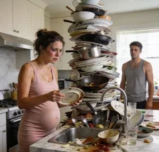 When I saw my eight-month pregnant wife washing dishes alone at ten o’clock at night, I called my three sisters and said something that left everyone silent. But the strongest reaction… it came from my own mother.